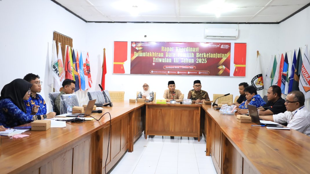 Komisi Pemilihan Umum (KPU) Kabupaten Sumbawa menggelar Rapat Koordinasi Pemutakhiran Data Pemilih Berkelanjutan (PDPB) Triwulan III Tahun 2025 yang bertempat di Aula KPU Kabupaten Sumbawa. (Rabu, 1/10/2025)