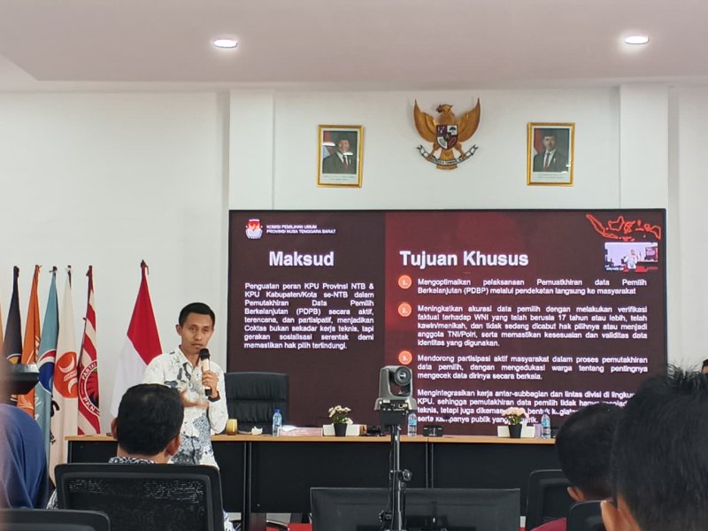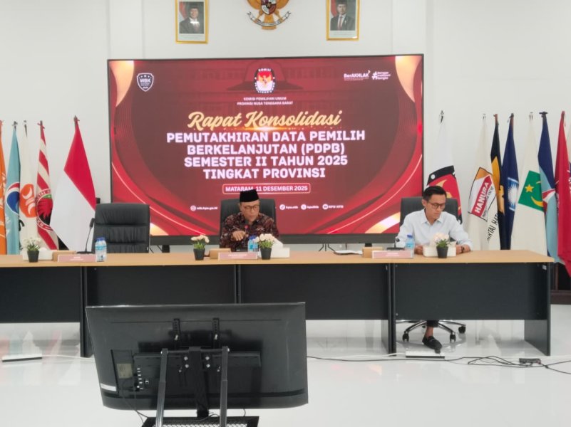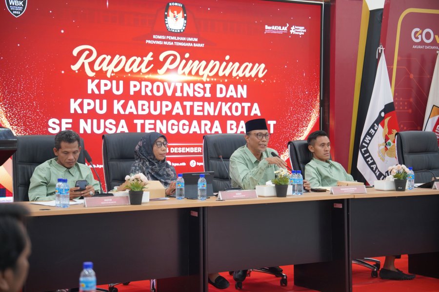 Komisi Pemilihan Umum (KPU) Kabupaten Sumbawa menghadiri kegiatan Rapat Pimpinan (Rapim) yang diselenggarakan oleh KPU Provinsi Nusa Tenggara Barat (NTB) bersama seluruh KPU Kabupaten/Kota se-Provinsi NTB. Kegiatan ini menjadi forum strategis untuk memperkuat koordinasi, konsolidasi, dan evaluasi kinerja kelembagaan. (14/12/20250 Rapat Pimpinan dibuka secara resmi oleh Ketua KPU Provinsi NTB, Muhammad Khuwailid, yang sekaligus menyampaikan sambutan dan arahan kepada seluruh jajaran KPU Kabupaten/Kota. Dalam sambutannya, Ketua KPU Provinsi NTB menekankan pentingnya sinergi dan keselarasan program kerja antar tingkatan KPU dalam rangka menjaga profesionalitas serta kualitas penyelenggaraan pemilu. Kegiatan Rapim kemudian dilanjutkan dengan pemaparan dan arahan dari masing-masing Divisi KPU Provinsi NTB sesuai dengan bidang tugas dan tanggung jawabnya. Pemaparan tersebut mencakup evaluasi pelaksanaan program, penyampaian kebijakan strategis, serta langkah-langkah yang perlu menjadi perhatian KPU Kabupaten/Kota ke depan. Selanjutnya, laporan kinerja dari masing-masing KPU Kabupaten/Kota disampaikan secara tertulis sebagai bentuk akuntabilitas pelaksanaan tugas dan fungsi kelembagaan. Laporan tersebut menjadi bahan evaluasi bersama guna meningkatkan efektivitas kerja serta memperkuat tata kelola organisasi di lingkungan KPU se-Provinsi NTB. Melalui keikutsertaan dalam Rapat Pimpinan ini, KPU Kabupaten Sumbawa berkomitmen untuk terus meningkatkan kinerja kelembagaan, memperkuat koordinasi dengan KPU Provinsi NTB, serta mendukung terwujudnya penyelenggaraan pemilu yang profesional, transparan, dan berintegritas.